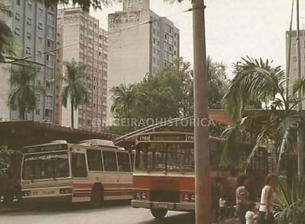Integração trólebus x ônibus no Terminal Carlos Gomes - década de 1980.